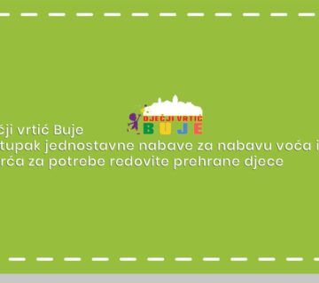 Dječji vrtić Buje proveo je postupak jednostavne nabave za nabavu voća i povrća za potrebe redovite prehrane djece, sukladno Pravilniku o jednostavnoj nabavi. ... Pročitaj više