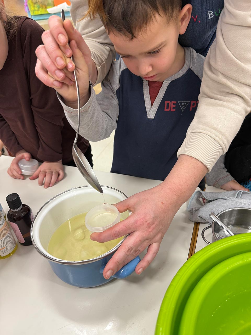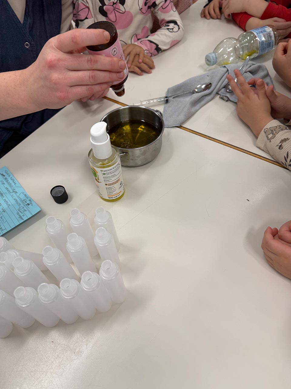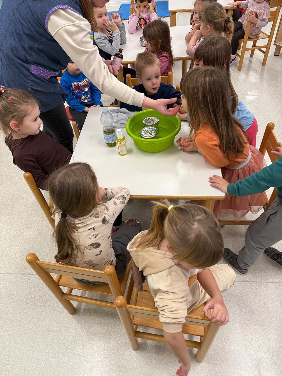 Skupine Kockice i Pčelice nastavile su s aktivnostima u sklopu projekta Vrtić zdravlja kroz zajedničku radionicu izrade prirodne kozmetike. Djeca su izrađivala parfemsko ulje i kremu za ruke, upoznajući pritom prirodne sastojke i važnost brige o sebi na kreativan i njima blizak način.